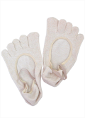 バレエレッスンに使用していただける、レーヨンシルクと綿コーマの交撚糸でつくられた5本指ソックス。