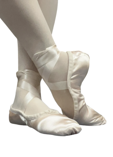 リボン・ゴム付きのスプリットソール仕様で、踊りやすく履きやすく長時間でも美しさをキープ。