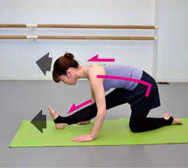 お腹を縮めず、前に伸びるような意識でストレッチしましょう。