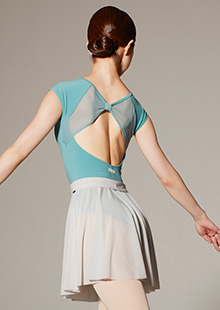 背中の大胆なレースがエレガントなレオタード。バックラインをより美しく見せるオリジナルのデザインです。ネックラインのホルターデザインが上品さをプラスし、全体的に美しい仕上がりを見せています。気分を上げてレッスンしていただけるデザインにこだわり抜いた一枚です。