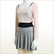 黒ばかりだと重くなりがちなシンプルコーデを、ピンクやグレーを使って明るい印象に。ギャザーTシャツは二の腕が気になる方にお勧め。キュロットで腰回りをしっかりカバーします。
